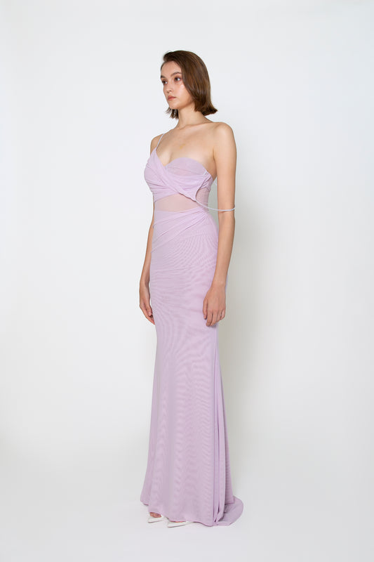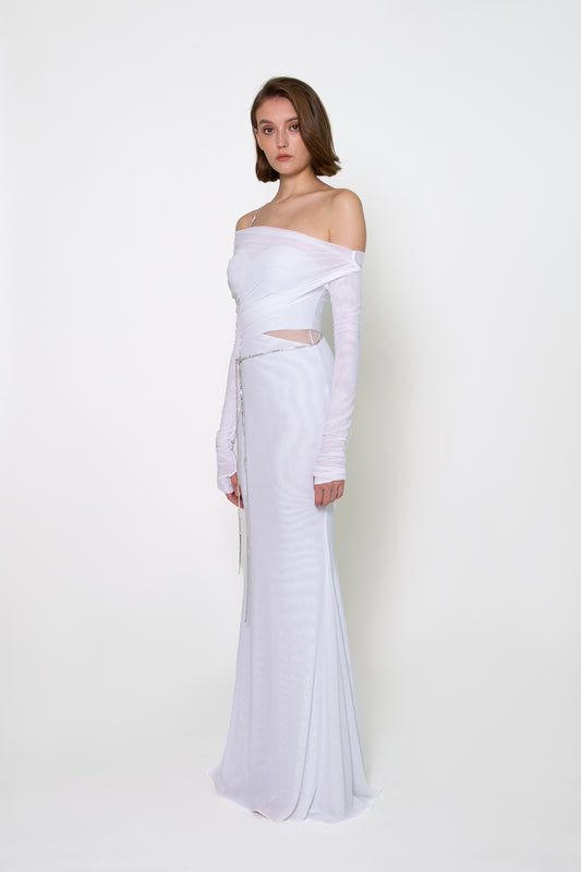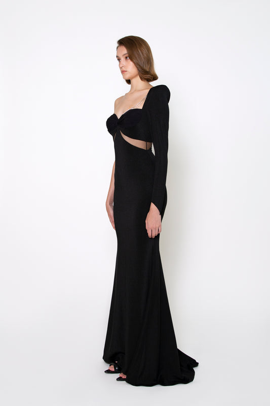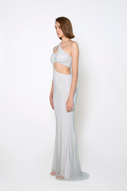 ONE-SHOULDER CUTOUT CRYSTAL GOWN